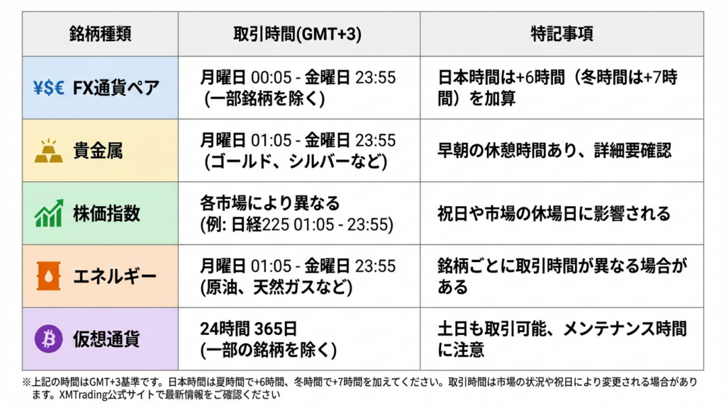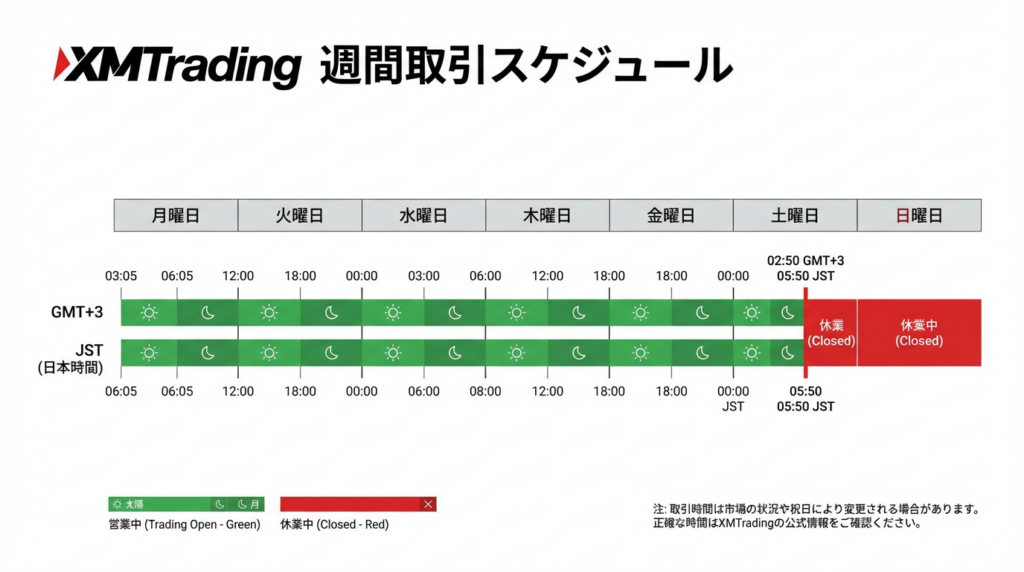 📅 XMTrading基本取引時間(2026年対応)