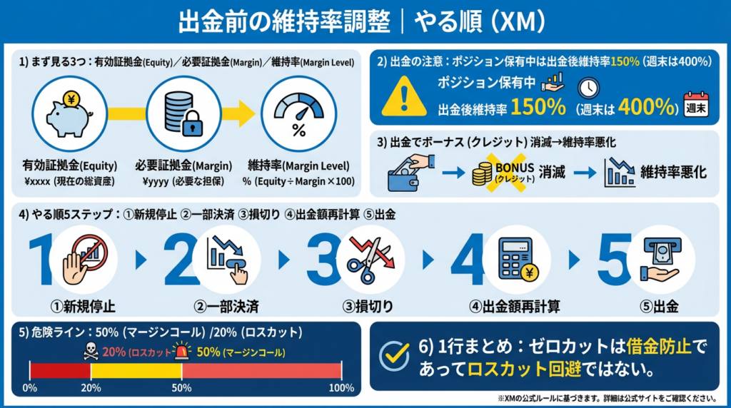 XMTrading 出金前の維持率調整マニュアル|150%ルールを割らずに“安全に引き出す”手順