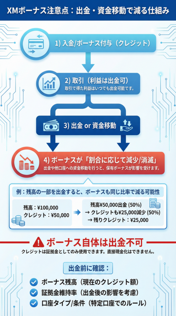 ポイント3:出金・資金移動で“ボーナスが減る/消える”仕組みがある